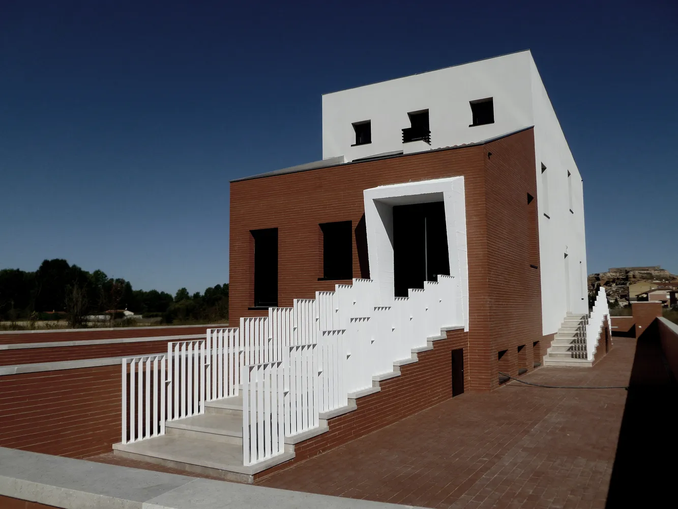 Es esta vivienda se usa la abstracción formal y conceptual como mecanismo de diferenciación frente al variopinto entorno edificado. Dos volúmenes yuxtapuestos fragmentan vertical y horizontalmente la imagen longitudinal de la casa derivada de un solar donde predomina su fondo frente a la anchura.