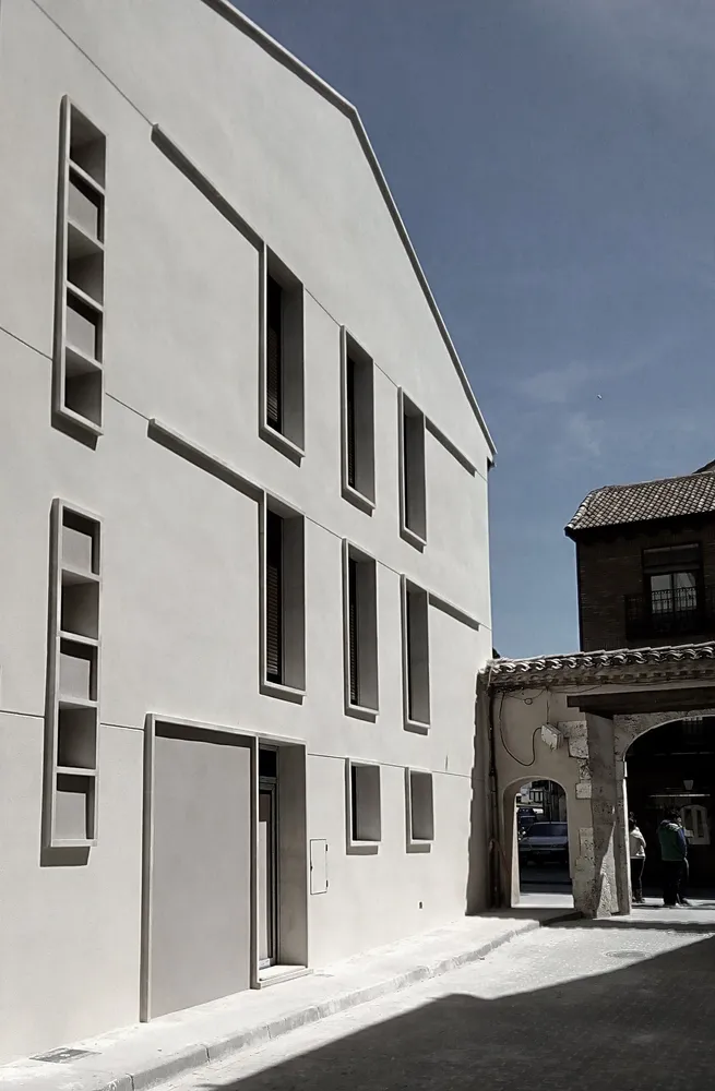 Se proyectan dos fachadas completamente diferenciadas como respuesta a la diferente naturaleza de los espacios situados frente a ellas.