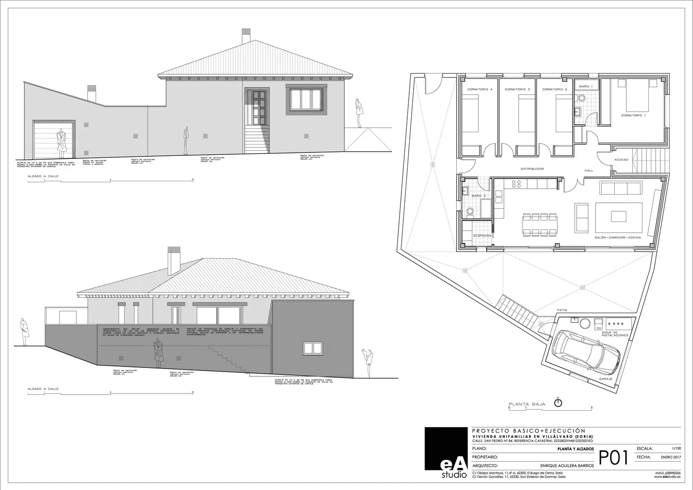 Se proyecta una vivienda en planta baja que con una superficie construida mínima da respuesta a las necesidades espaciales de los promotores.