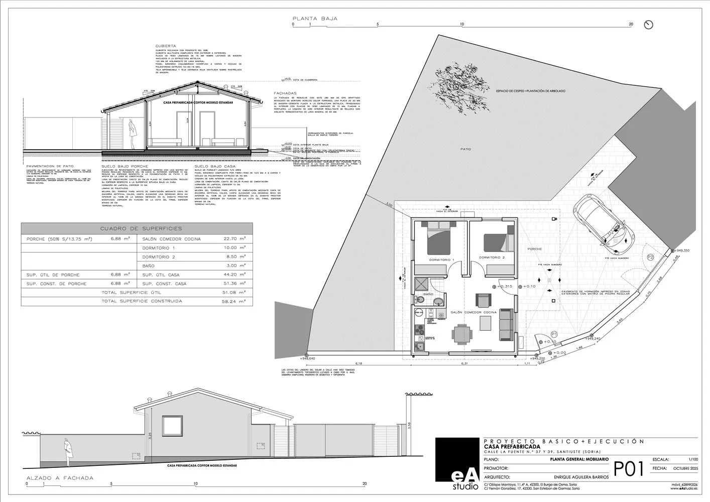La vivienda prefabricada supone en algunos casos una alternativa real a la vivienda construida in situ por la reducción de los tiempos de ejecución. En este caso se ejecuta el proyecto para adaptar una vivienda modular fabricada por la casa Cofitor a un solar existente.