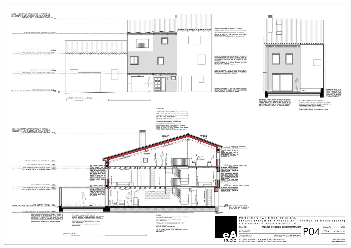 Se ha proyectado una vivienda moderna, amplia y funcional, pero con una imagen exterior “tradicional” adaptada a la arquitectura del entorno. Se apuesta por un zócalo de mampostería en toda la planta baja que aporta la solidez necesaria propia de una planta con un carácter más ciego, mientras que en las plantas altas es la geometría articulada por los huecos verticales de los balcones la que genera una composición ordenada y armoniosa.